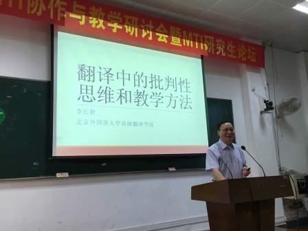 广西译协首届MTI协作与教学研讨会暨MTI研究生论坛于6月18日在广西大学外语学院举行。我院李长栓教授作为特邀嘉宾参会,并作题为“翻译中的批判性思维与教学方法”的发言。