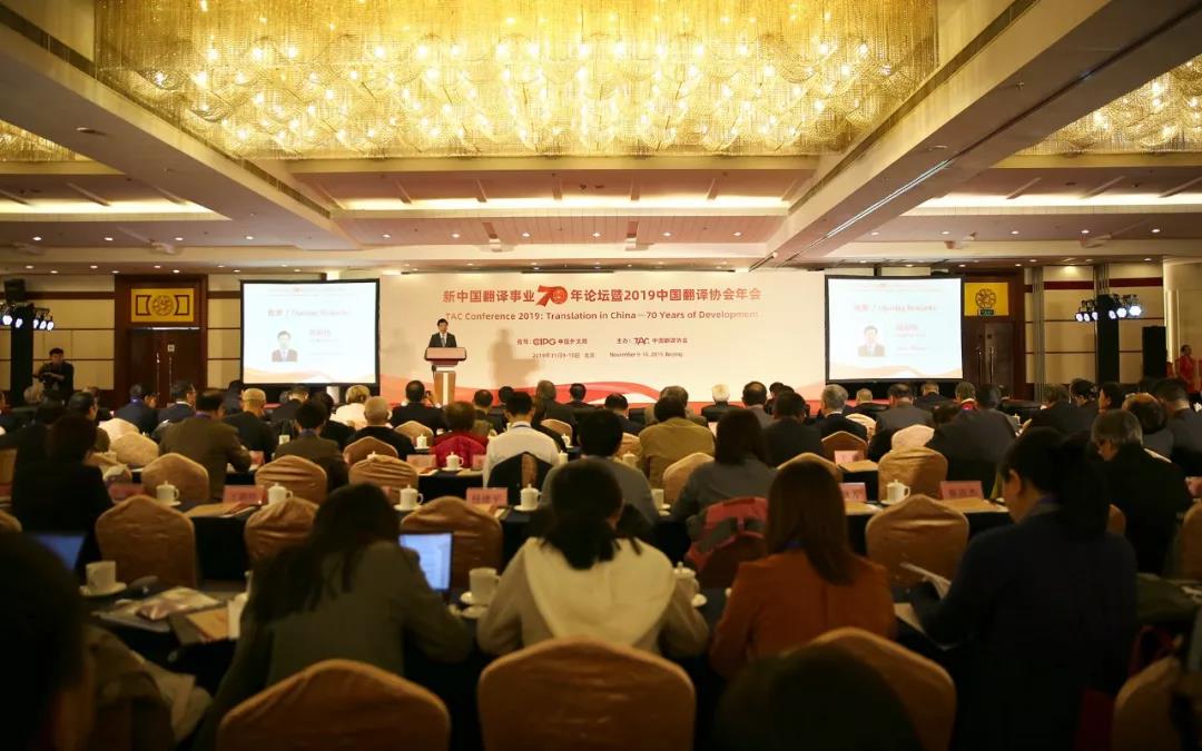 2019年119日,由中国外文局指导,中国翻译协会主办的新中国翻译事业70年论坛暨2019年中国翻译协会年会在北京隆重开幕。来自中央国家机关、各省市、自治区、港澳台地区、企事业单位、高等院校、科研机构及行业组织的代表,以及来自亚洲、欧洲、北美、拉美等十多个国家和地区的代表共900余人参加会议。中宣部部务会议成员、国务院新闻办公室副主任郭卫民、中国外文局局长杜占元、中国翻译协会会长周明伟、国际翻译家联盟主席凯文·夸克(Kevin Quirk)出席大会并致辞。