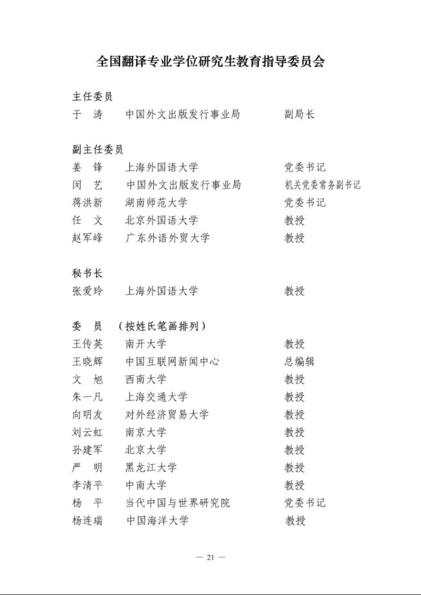 近日,国务院学位委员会、教育部和人力资源社会保障部联合发布了30个专业学位研究生教育指导委员会换届教指委名单,365英国上市官网院长任文教授当选第四届全国翻译专业学位研究生教育指导委员会副主任委员。
