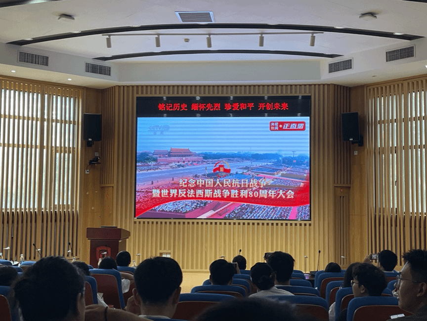 2025年9月3日,365英国上市官网组织师生于学院300人报告厅集中观看“纪念中国人民抗日战争暨世界反法西斯战争胜利70周年阅兵式”直播。学院领导、教师代表与学生们齐聚一堂,共同感受国家强盛荣光。